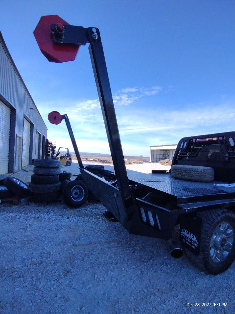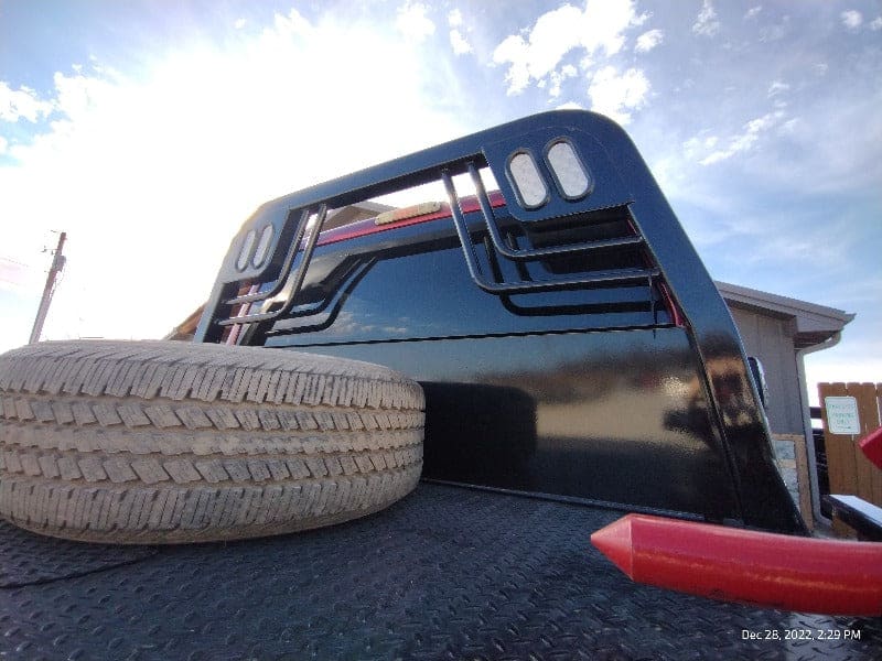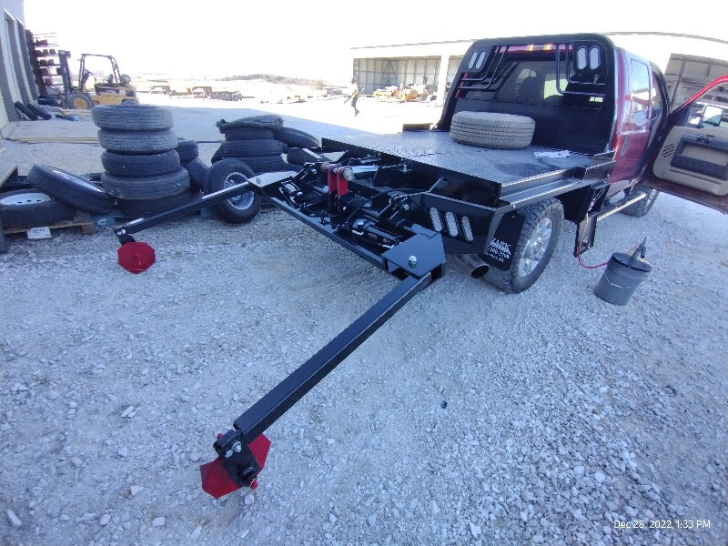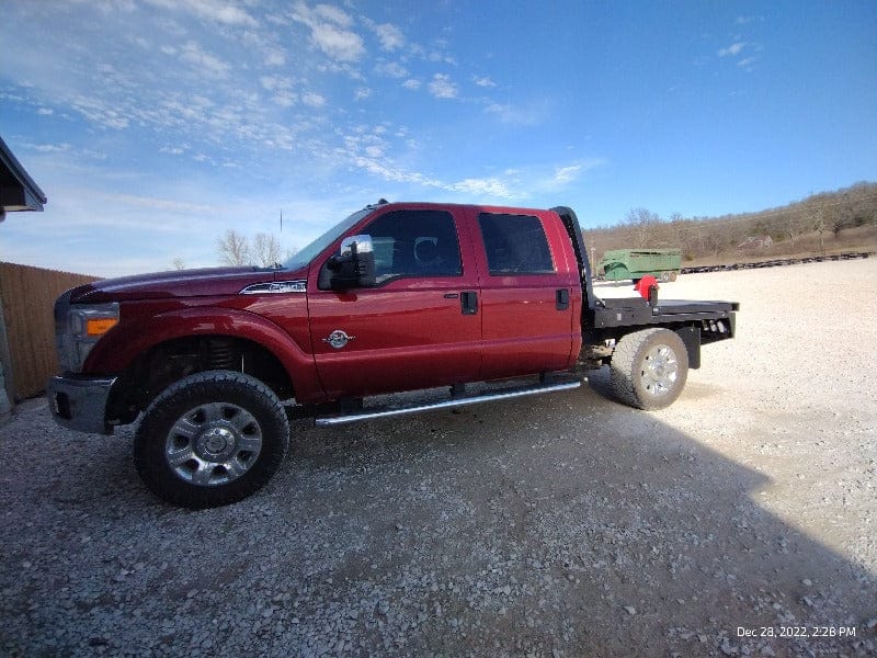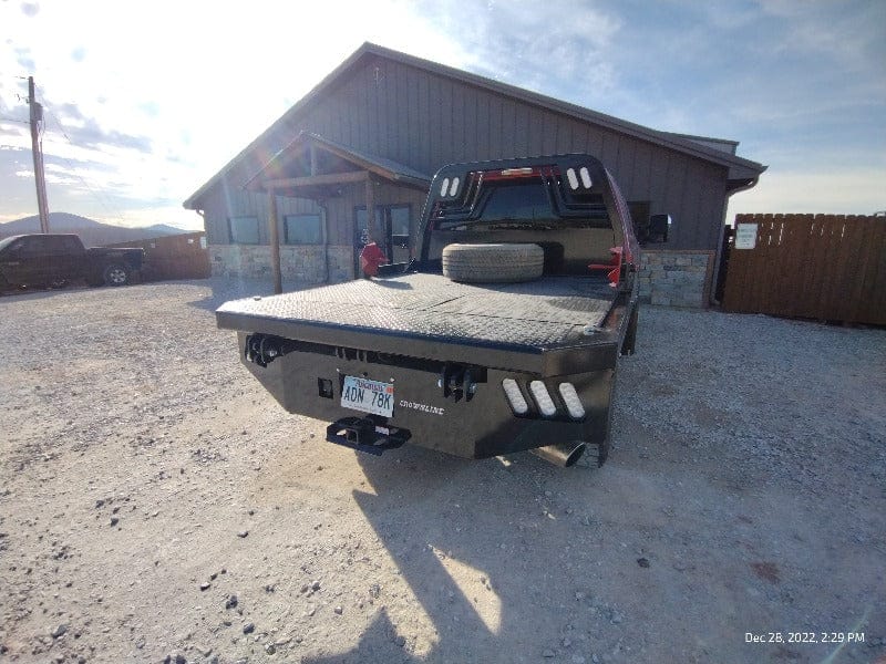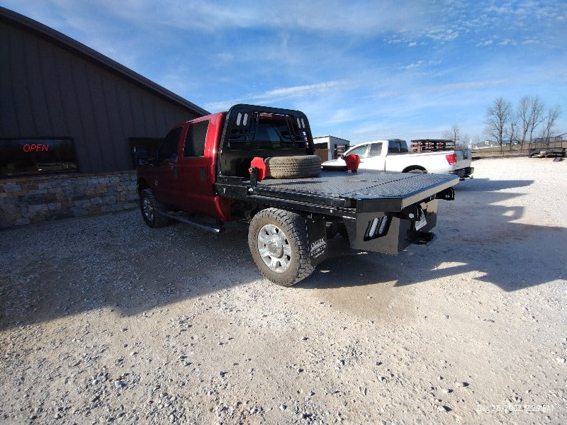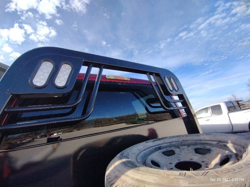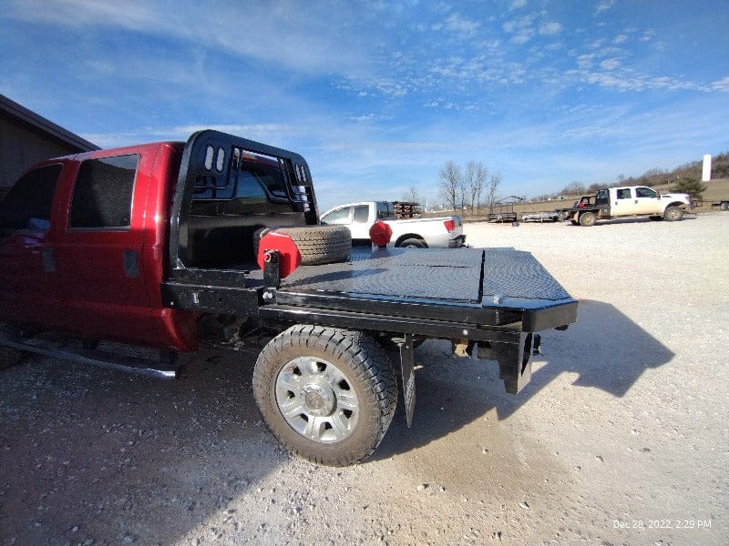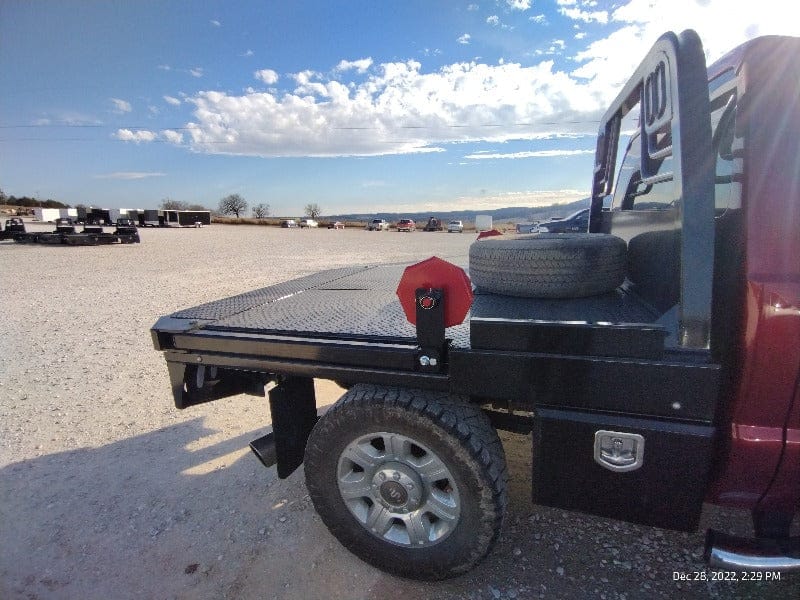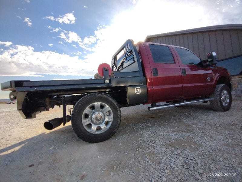 Cash/Check Price: $7,450 Before Taxes and Installation Taxes are not included in sale price. Farm Tax Exemption forms are available upon pickup. Call or Email Installs are $800 Removal of Factory Bed $150 Back-Up Camera Install $125 Rear Sensor Install $100 Fits a Short Bed Single Wheel STANDARD FEATURES: Steel Structural Frame 4″ Frame Runner Channels Formed 1/4″ Channel Cross Members placed every 12″ Steel Tube Head Rack w/ Cross Bars, Tail & Rev. Lights Steel 1/8″ Diamond Plate Floor Built-in Gooseneck Ball Mount w/ Diamond Plate Lid Internal Stake Pockets Angled Fuel Filler Neck – DEF Ready Steel hinged Fuel Doors with magnetic latches Skirted Rear Bumper Receiver Hitch Ready Premium Black Paint 4 Clear 6″ Oval LED Reverse Lights 6 Red 6″ Oval LED ST/TL/TN Lights Single LED License Plate Light All Lighting DOT Approved Molded Sealed Harness w/ Load Resistor 7 Way Receiver Female Plug w/ Adaptor Rubber Mud Flaps Electric/Hydraulic pump Corded remote One under-mount toolbox w/ hyd. pump Lifting Capacity of 2,500 lb Bale If Bed shows out of stock, give our sales staff a call to find out how to custom order your own!
