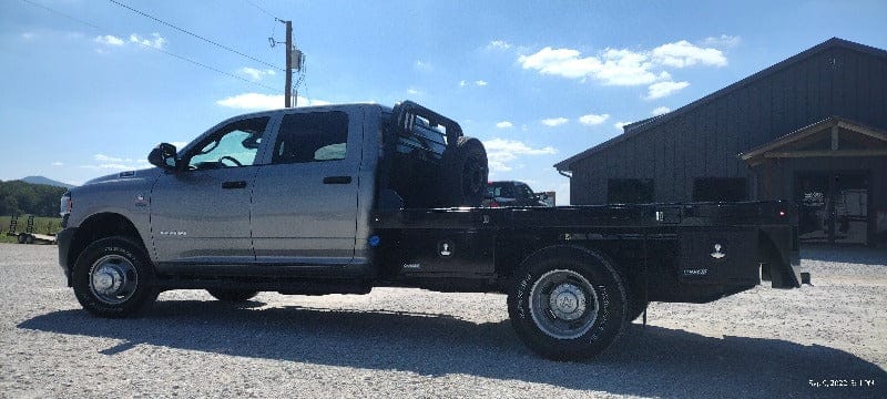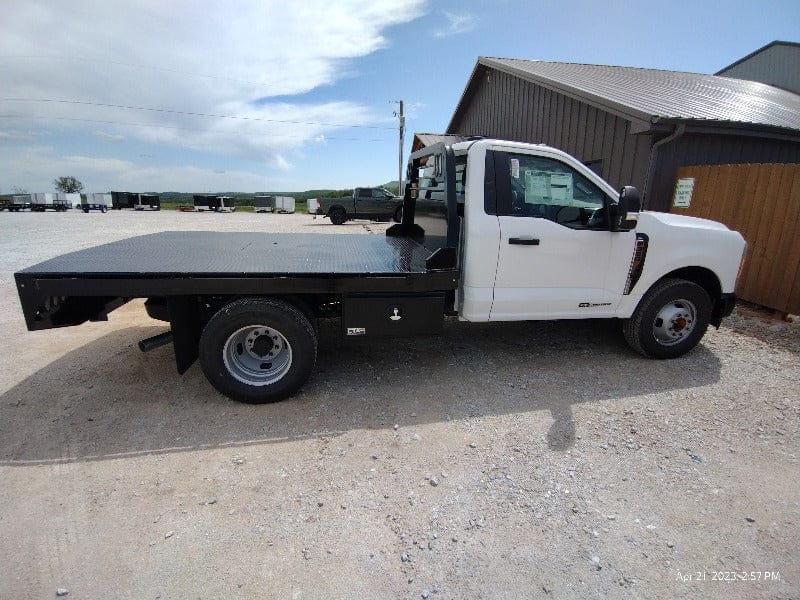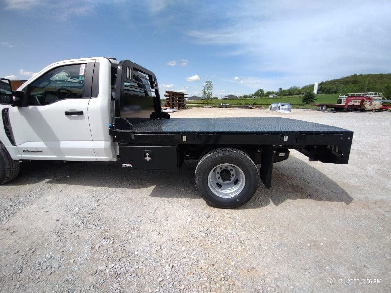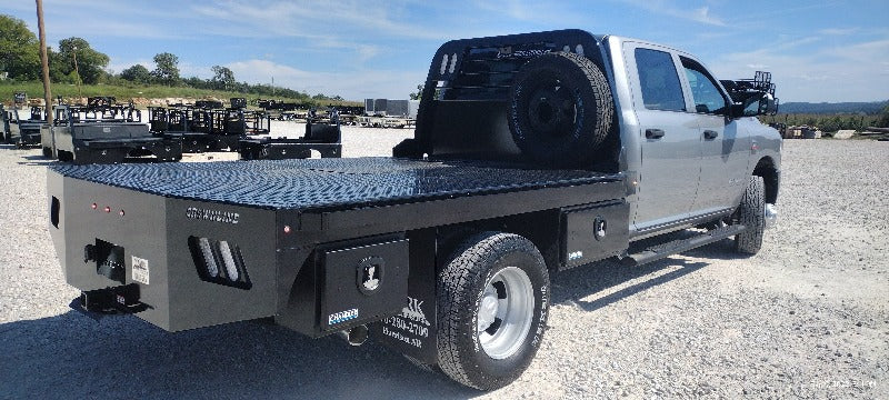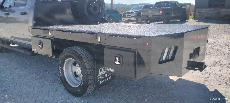 Cash/Check Price: $3,600 Before Taxes and Installation Taxes are not included in sale price. Farm Tax Exemption forms are available upon pickup. Call or Email Install: $650 Factory bed removal: $150 Back up Camera: $125 Sensors: $100 This bed fits a Cab and Chassis with: 116″ Bed Length 84″ width 60″ Cab to Axle Measurement Bed weighs: 1240 lbs (Tool boxes sold separate) Standard Features Include: Steel Structural Frame 4″ Frame Runner Channels Formed 1/4″ Channel Cross Members placed every 12″ Steel Tube Head Rack w/ Cross Bars, Tail & Rev. Lights Steel 1/8″ Diamond Plate Floor Built in Gooseneck Ball Mount w/ Diamond Plate Lid Internal Stake Pockets Angled Fuel Filler Neck – DEF Ready Skirted Rear Bumper Receiver Hitch Ready 6 Red 6″ Oval LED ST/TL/TN Lights Single LED License Plate Light All Lighting DOT Approved Molded Sealed Harness w/ Resistor 7 Way Receiver Female Plug w/ Adaptor Rubber Mud Flaps LED Marker Lights 4 Clear 6″ Oval LED Reverse Lights Premium Black Paint Optional Features 3″ Side Rails (Our beds are usually external stake pockets with a rub rail for this price) Additional Tool Boxes 7 way connector in the gooseneck box If Bed shows out of stock, give our sales staff a call to find out how to custom order your own!