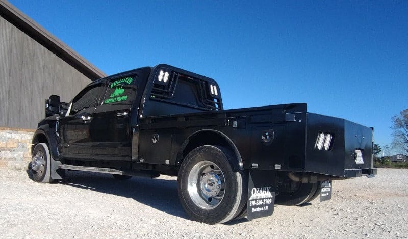 Cash/Check Price: $4,750 Before Taxes and Installation Taxes are not included in sale price. Farm Tax Exemption forms are available upon pickup. Call or Email Installation = $650 Bed Removal = $150 Backup Camera = $125 Sensors = $100 Fits a Cab & Chassis Features: Steel Structural Frame 1/8″ Steel Diamond Plate Floor Angled Fuel Filler Neck & Def Ready Class 4 Receiver Hitch Ready Black Powder Coat 6″ Oval LED Reverse Lights Single LED License Plate Light Molded Sealed Harness 3″ Removable Side Rails 4″ Runner Channels Steel Tube Headache Rack with Cross Bars, Lights 30K Rated Built in Gooseneck Well with Welded Ball Skirted Rear Bumper Smooth Flare Fenders LED Marker Lights 6″ Oval LED Stop/Tail/Turn Lights All Lighting DOT Complaint 7 Way Receiver Female Plug 4 Built in Toolboxes Bed Weight = 1700LBS Cab to Axle = 60″ Length = 112″ Width = 94″ If Bed shows out of stock, give our sales staff a call to find out how to custom order your own!