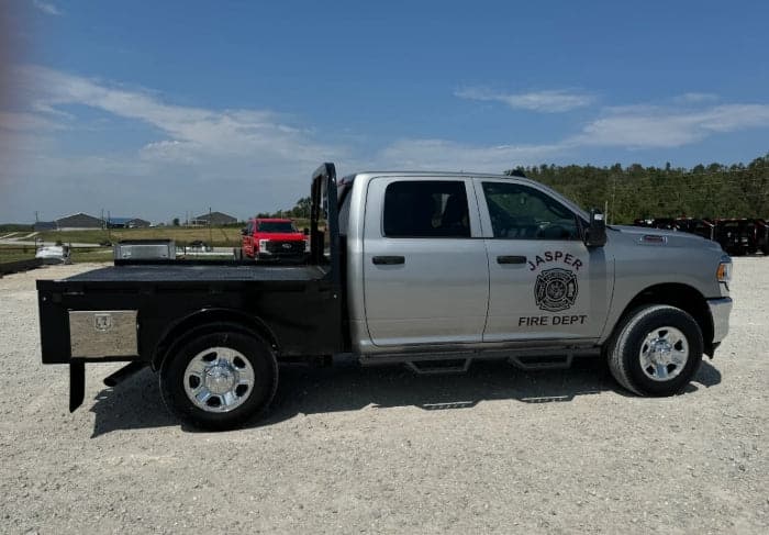 Cash/Check Price: $4,350 Before Taxes and Installation Taxes are not included in sale price. Farm Tax Exemption forms are available upon pickup. Call or Email Installation = $650 Bed Removal = $150 Backup Camera = $125 Sensors = $100 Fits a Single Wheel Short Bed Dodge Pickup between 2003-Present Features: Steel Structural Frame 1/8″ Steel Diamond Plate Floor Angled Fuel Filler Neck & Def Ready Class 4 Receiver Hitch Ready Black Powder Coat 6″ Oval LED Reverse Lights Single LED License Plate Light Molded Sealed Harness 3″ Removable Side Rails 4″ Runner Channels Steel Tube Headache Rack with Cross Bars, Lights 30K Rated Built in Gooseneck Well with Welded Ball Skirted Rear Bumper Smooth Flare Fenders LED Marker Lights 6″ Oval LED Stop/Tail/Turn Lights All Lighting DOT Complaint 7 Way Receiver Female Plug 2 Built in Toolboxes on the rear Bed Weight = 1400LBS Cab to Axle = 38″ Length = 84″ Width = 84″ If Bed shows out of stock, give our sales staff a call to find out how to custom order your own! Pictures will vary: Bed now comes with 2 tool boxes on the rear of the bed.